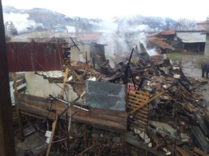 Yangın kısa sürede büyürken alevler H.B.K.’ya ait eve de sıçradı. Alevler adeta gecenin karanlığını aydınlatırken köy sakinleri 112 Acil Çağrı Merkezini aradı.