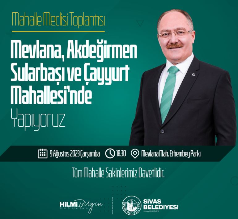 Mevlana, Çayyurt, Akdeğirmen ve Sularbaşı Mahallesi sakinlerinin iştirak edeceği program 09 Ağustos 2023 Çarşamba saat 18.30’da Ethembey Parkı’nda gerçekleşecek.