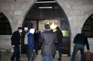 Sivas’ta vatandaşlar, korona virüs nedeniyle verilen 2 yıl aranın ardından ilk teravih namazı için tarihi Ulu Camii’ne akın etti.