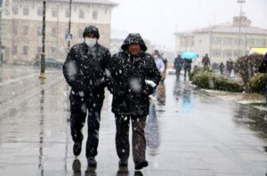 Sivas’ta hava sıcaklığı 20 derece birden düştü, Nisan ortasında şehir merkezinde lapa lapa kar yağdı.