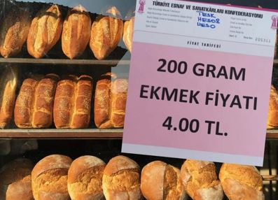 Uzun zamandan bu yana ham maddelere gelen zamlar bizleri bu seviyeye getirdi. Mazot, doğalgaz, maya, un, işçi giderleri vesaire derken listemiz uzayıp gidiyor. Bu bağlamda somun ekmek yarından itibaren bu fiyattan satışa sunulacaktır.”